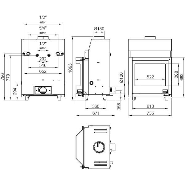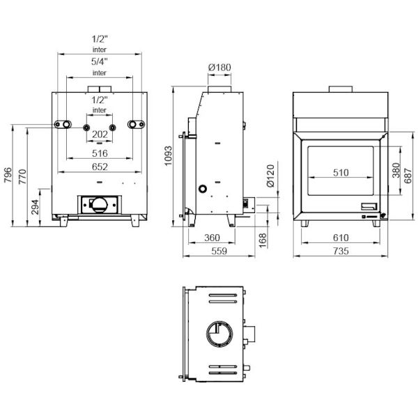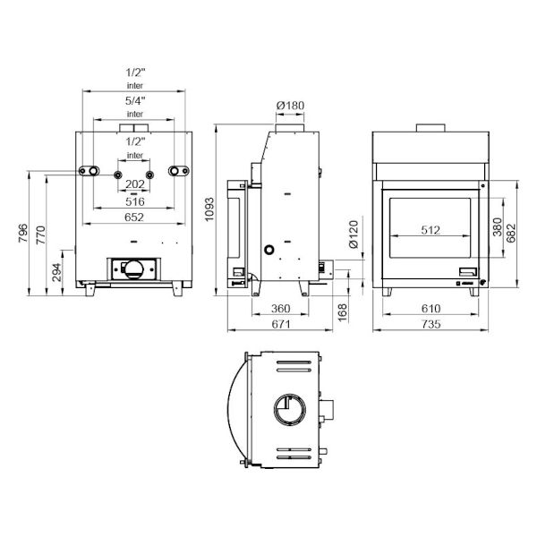 Διαστάσεις: Ύψος 1093 mm, Πλάτος 735 mm