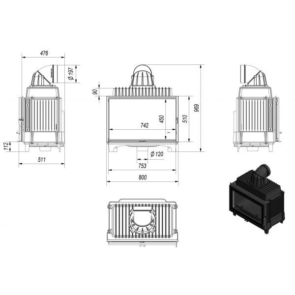 Πρόκειται για μια εστία κλειστού τύπου, που σφραγίζει ερμητικά από όλες τις πλευρές. Αυτό έχει ως αποτέλεσμα μεγάλη μείωση στην απώλεια της θερμότητας όταν γίνεται η καύση του ξύλου, άρα ζεσταίνει πιο αποτελεσματικά τον χώρο σε σχέση με ένα κλασικό τζάκι ανοιχτού τύπου.